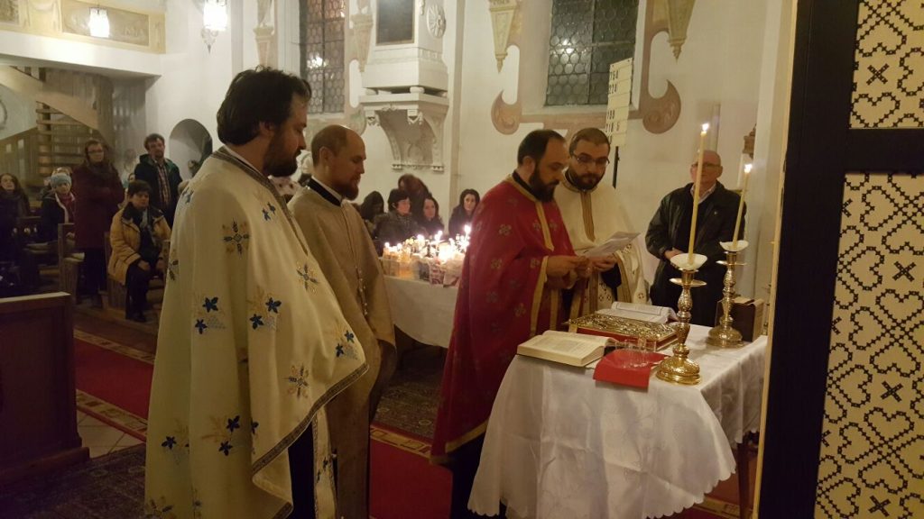Sursa: http://www.mitropolia-ro.de/index.php/arhiva-stirilor/609-sarbatoarea-parohiei-sfintii-petru-si-pavel-din-ulm Diac. Dr. Alexandru Roşu, Bonn O mare bucurie a stăpânit sufletele credincioşilor Parohiei Ortodoxe Române „Sfinţii Petru şi Pavel” din Ulm, care sâmbătă, 27 iunie 2015, şi-a sărbătorit primul hram după reorganizarea iniţiată anul trecut prin numirea noului paroh Pr. Sebastian Suciu. În mijlocul a peste 170 de credincioşi şi într-o atmosferă de căldură sufletească, ÎPS Părinte Serafim, Mitropolitul Germaniei, Europei Centrale şi de Nord, a celebrat Sfânta Liturghie înconjurat de un sobor de preoţi şi diaconi. Alături de preotul paroh au mai slujit Pr. Ciprian Suciu (Parohia Augsburg) şi Pr. Cristian Căjvăneanu (Parohia Kempten) dar şi mai mulţi oaspeţi veniţi din ţară: Pr. Dumitru Pătrunjel (Parohia Târnăveni-Boziaş. Jud. Mureş), Pr. Laurenţiu Hălmaciu (Parohia Crăieşti, protopopiatul Târnăveni), Pr. Vasile Goga (Parohia Cetatea de Baltă, protopopiatul Blaj) cât şi Pr. Iconom stravrofor Corneliu Bujoreanu, inspector eparhial în cadrul Episcopiei Covasnei şi Harghitei. Soborul a fost întregit de diaconii Dumitru Dura (secretarul Mitropoliei noastre), Ierod. Ioan Popoiu (consilier cultural al Mitropoliei) şi Diac. Alexandru Roşu (Parohia Bonn). Numărul credincioşilor prezenţi a fost sporit de către mai mulţi credincioşi ai parohiei de la Bonn anume veniţi pentru această sărbătoare. Răspunsurile liturgice au fost date de corul parohiei condus de tânărul teolog Adrian Goga. În cuvântul de învăţătură, ÎPS Mitropolit Serafim a adus înaintea ochilor celor prezenţi modelul răspunsului la chemarea lui Dumnezeu şi al desăvârşirii harului lucrată prin asumarea suferinţelor, întruchipat de Sf. Apostol Pavel, şi respectiv, pe acela al tăriei credinţei mărturisitoare, reprezentat de Sf. Apostol Petru. Credinţa mărturisitoare, asumarea suferinţei, şi propovăduirea neîncetată izvorâtă din dragostea Domnului Hristos sunt acelea care zidesc comunitatea şi, prin intermediul acesteia, comuniunea. ÎPS Sa a lăudat revitalizarea duhovnicească a parohiei româneşti din Ulm, roada activităţii pastorale a noului paroh şi a săvârşirii săptămânale a slujbelor Bisericii. Totodată, ÎPS Mitropolit Serafim a îndemnat la a spori eforturile pentru păstrarea identităţii naţionale dar şi a milosteniilor către cei din ţară aflaţi în nevoi. Sărbătoarea parohiei din Ulm a consfinţit colaborarea credincioşilor mai multor confesiuni, cărora Părintele Mitropolit a ţinut să le mulţumească nominal. La loc de cinste se înscriu numele D-lui Matthias Sollner (de confesiune romano-catolică) şi a soţiei sale D-na Afrodita, care împreună cu D-l Gheorghe Jitaru încă de acum 20 de ani au cerut Mitropoliei Ortodoxe a Germaniei ţinerea de slujbe ortodoxe în Ulm, punând astfel bazele parohiei. În pregătirea praznicului s-au distins D-l Peter Roppelt (de confesiune evanghelică) şi vrednica sa soţie D-na Mariana, Familia Andreas şi Lavinia Dörner, Familia Ciprian şi Elena Calangiu şi D-l Georg Hütter. Atmosfera de căldură şi zidire sufletească a continuat şi la agapa care a urmat slujbei. O veritabilă emulaţie a avut loc atunci când baladele rapsodului Ioan Creţeanu s-au succedat cu pricesenele şi cântecele populare şi patriotice interpretate de către preoţii oaspeţi din România, cunoscuţi pe Valea Târnavei Mici pentru cântecele lor intonate polifonic. ÎPS Mitropolit Serafim a ţinut mesenilor un cuvânt de învăţătură despre Sfinţii Martiri Brâncoveni, a căror baladă a fost cântată.